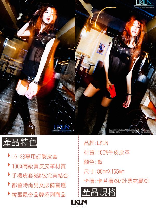 【韓國原裝潮牌 LKUN】LG G3 D855 專用保護皮套 100%高級牛皮皮套㊣ 多功能多用途手機皮套&錢包完美結合 (藍) 優惠賣家