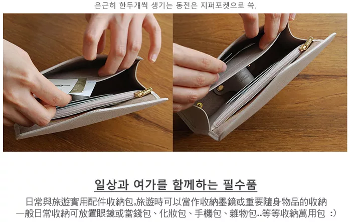一般日常收納可放置眼鏡或當錢包、化妝包、手機包、雜物包..等等收納萬用包。