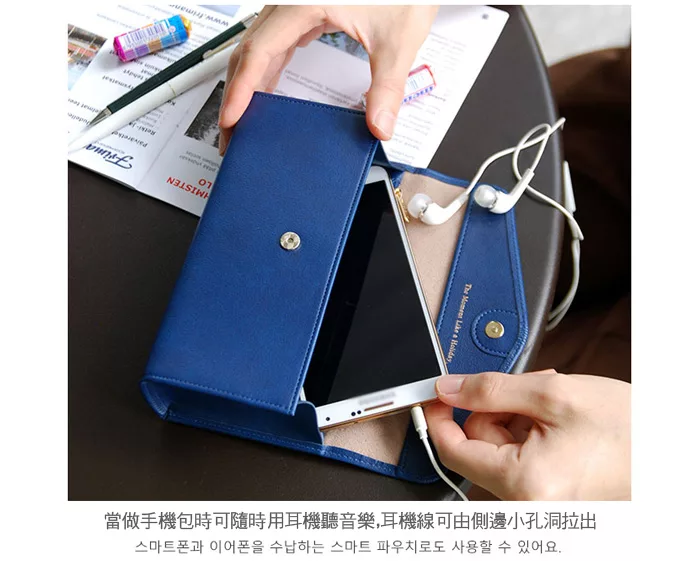 當做手機包時可隨時用耳機聽音樂,耳機線可由側邊小孔洞拉出。