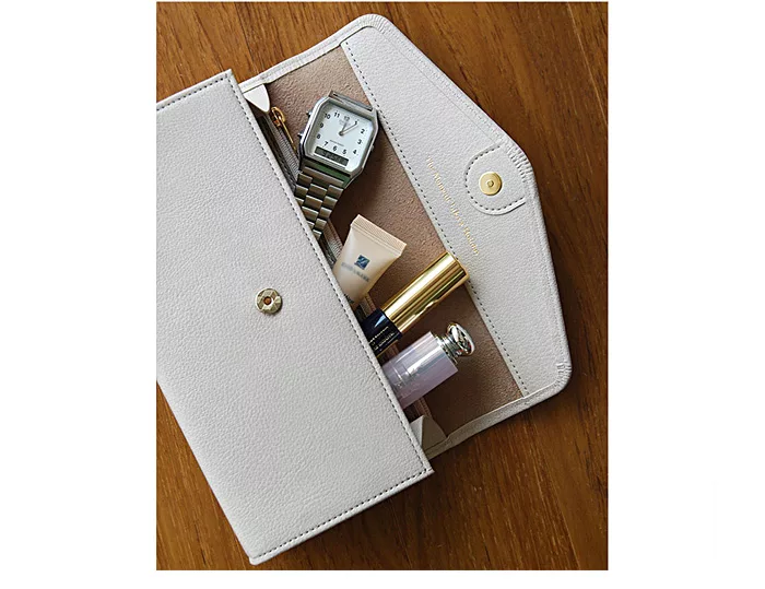 金屬磁釦開闔設計,磁釦鍍金處理有質感。