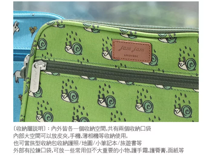 圖騰設計是森林裡的朋友們,配色當然也要很森林系囉,超適合可愛女孩,文青男女,讓JAM JAM森林好朋友加入你的旅遊收納時光吧。